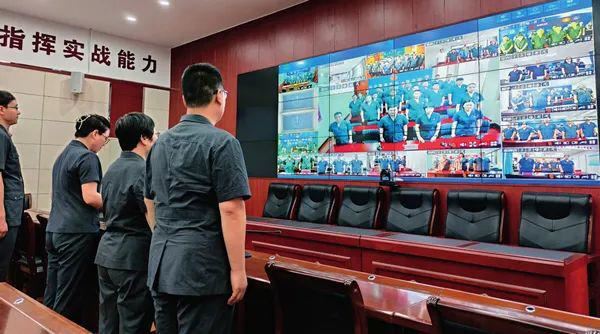 在保定中院执行指挥中心,记者和保定中院的执行局干警一起通过大屏幕显示的移动执行平台“GIS可视化实战管理系统”,实时观察执行现场情况。